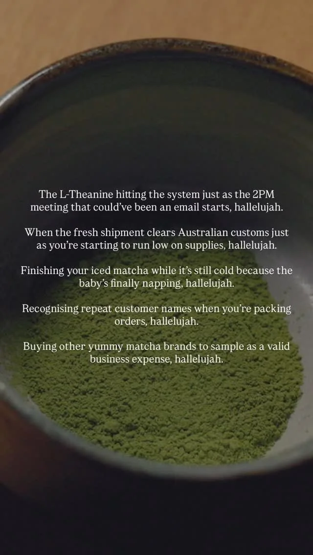 While our beloved physical store is now defunct, we continue to retail our tea products online. We also source Perthβs best cafes, including Chu Bakery and Kith Eatery, with our premium matcha.